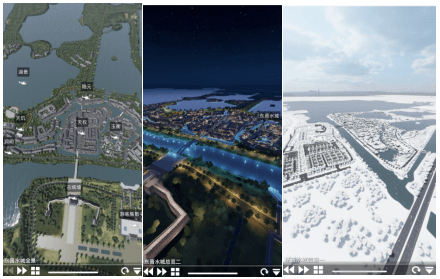場景制作更是還原了24小時光照以及四季效果來增強整體場景的現(xiàn)實意義,此場景屬于常規(guī)頁面,主要用于景區(qū)外立面效果展示。